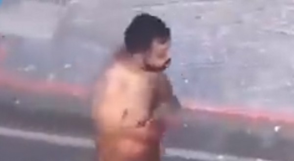 Il a ensuite été filmé l’air hagard, entièrement nu avec son arme à la main, le sexe ensanglanté, déambulant boulevard Louis-Picon.